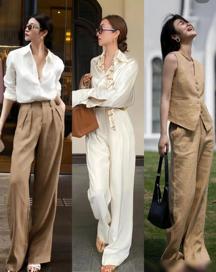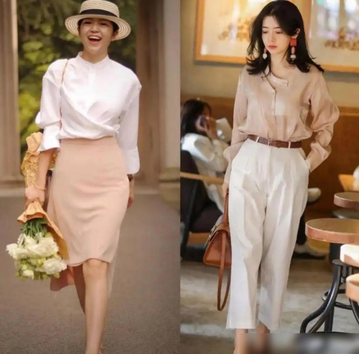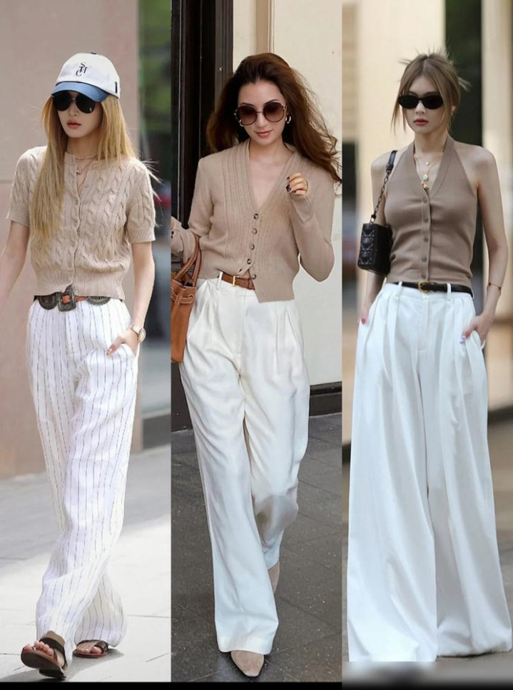 下装的话,紧身裤要弹性好、透气。长度到脚踝上头极少,利落。阔腿裤选高腰垂感好的,藏肉还显高。