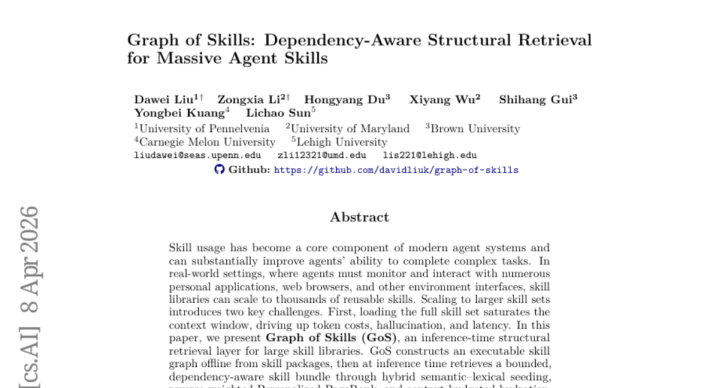 计划团队提议的治理有筹商叫作念"技巧图谱"(Graph of Skills,简称GoS)。中枢念念路是:与其单独评估每个技巧和任务的相似进程,不如先把通盘技巧之间的依赖关系和互助关系梳理成一张收集图,然后在检索时顺着这张关系网去找。