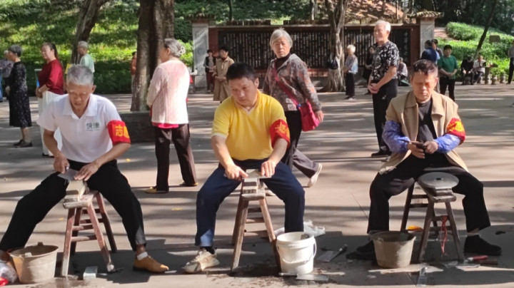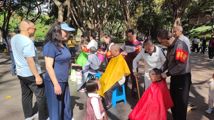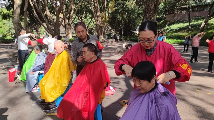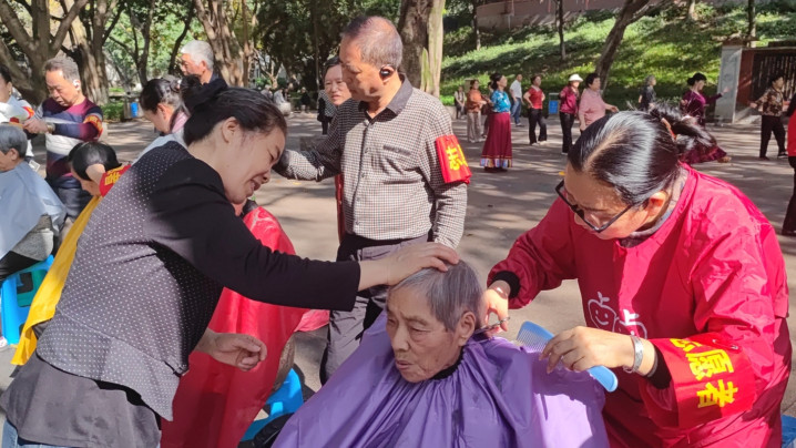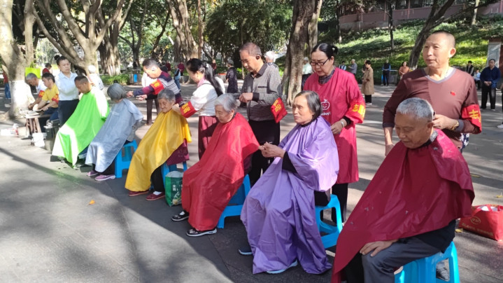 四月的重庆,春阳和煦如母亲怀抱。2026年4月18日,渝高公园内绿意盎然,重重叠叠的绿叶在阳光下舒展身姿,重庆九龙坡久久志愿处事队的12名成员带着用具与热忱,在此开展了一场暖心的志愿处事,为游园市民奉上理发、磨刀便民处事,成为春日里一起动东说念主的花式线。