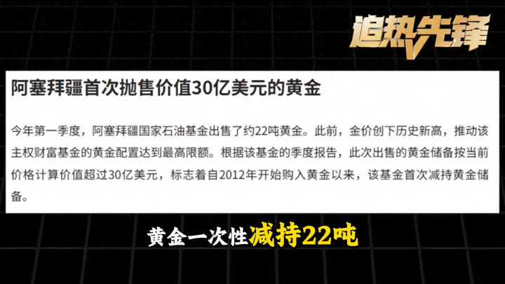 阿塞拜疆主权基金迎来14年首度抛售,黄金一次性减捏22吨,折算下来市值足足30亿好意思金。这波高位出货到底开释出若何的商场信号?专门义的是一边是小国度逢高变现浮松减仓,另一边中俄等大国还在稳步增捏,捏续囤金。