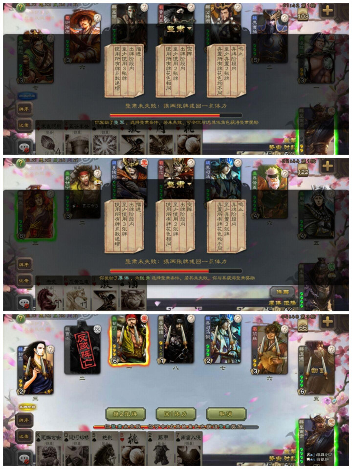 选拔队友完成其中一种,且队友完成后,其与我方齐可以获取【整肃】奖励:摸2张牌或复兴1点血。
