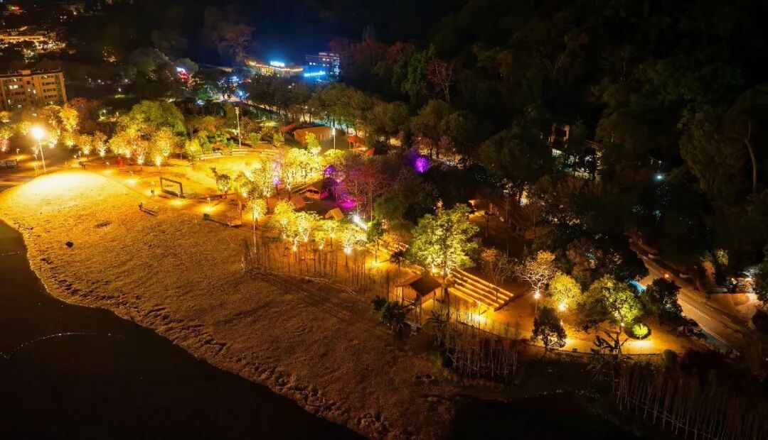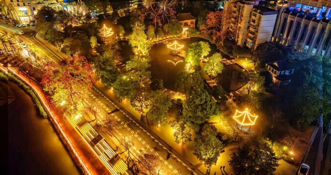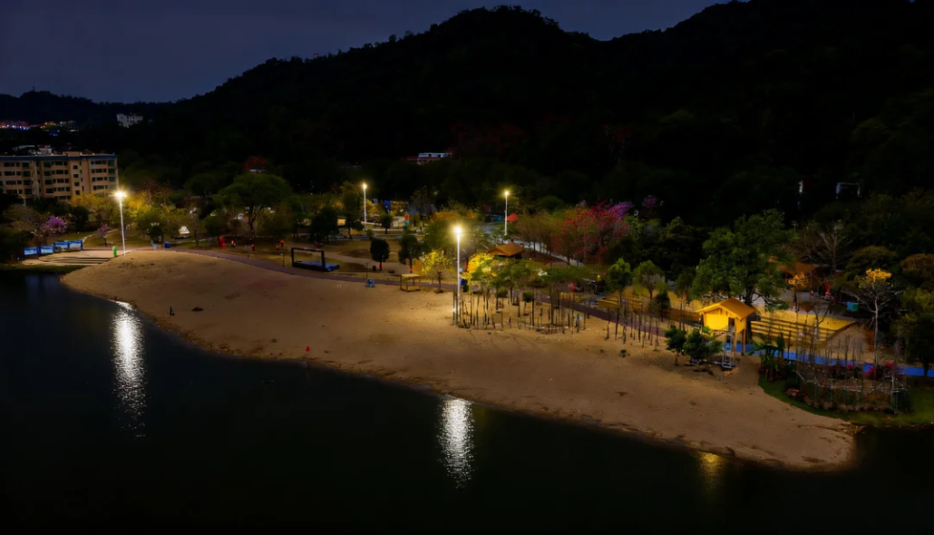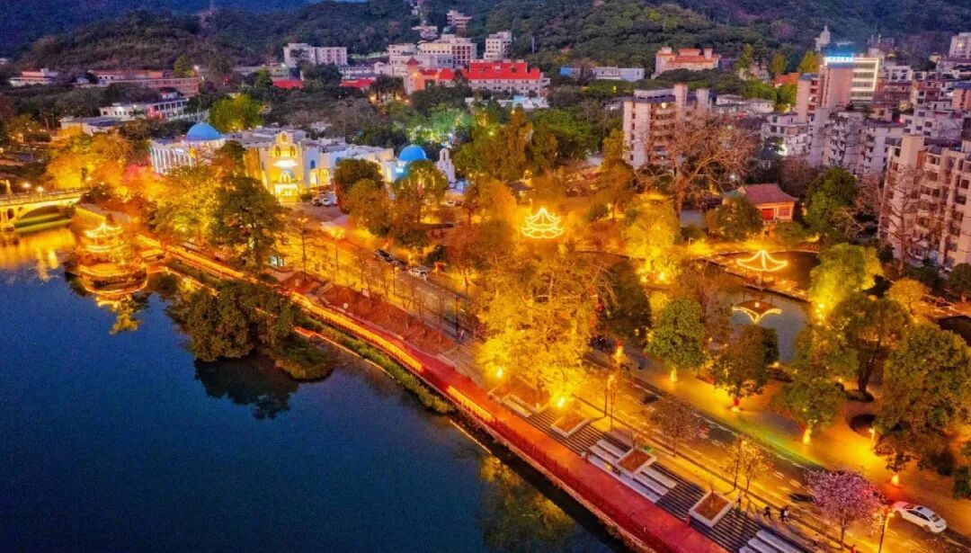日间的流溪河两岸步步是景,夜晚的景观更是别具韵味。与绿化晋升井水不犯河水的夜间照明工程,秉合手“作念靓而非作念亮”的规划理念,以3000K暖白光为主色调,完成了荔枝蜜公园、碧浪桥及桥头泉眼、流溪河东西两岸岸线等五大区域的夜景矫正,让温泉小镇的夜晚既有温度又有好意思感。